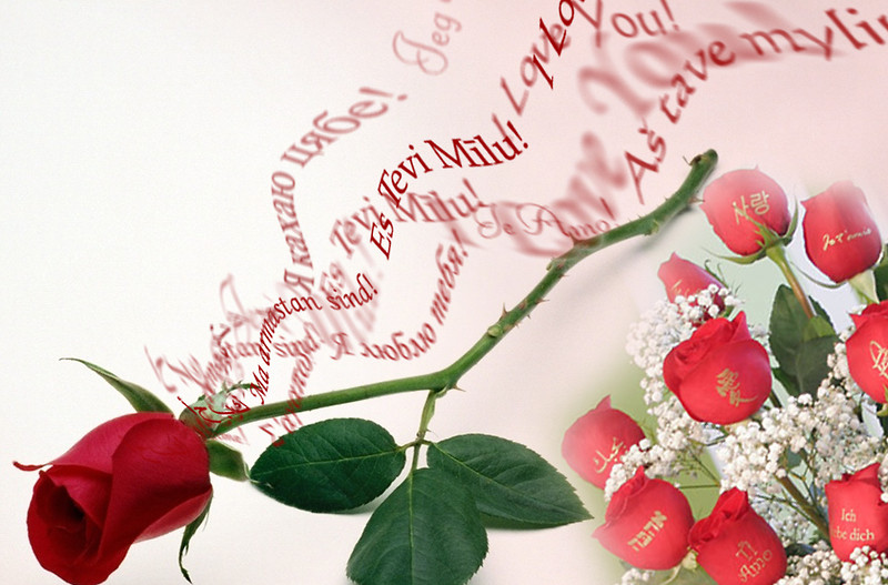 Oriģināla Valentīndienas dāvana - 11 Sarkanas Rozes ar uzrakstiem uz ziedlapiņas "Es Tevi Mīlu" 11 dažādās valodās - uz katras rozes uzraksts citā valodā.