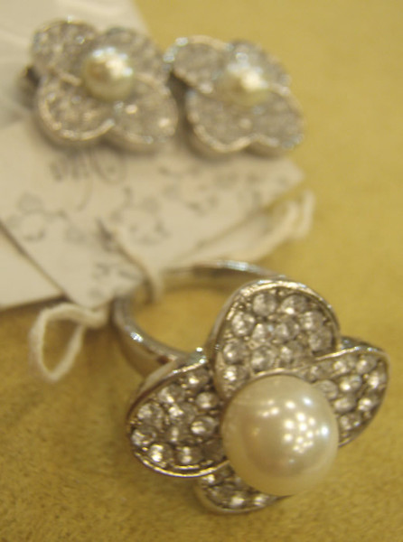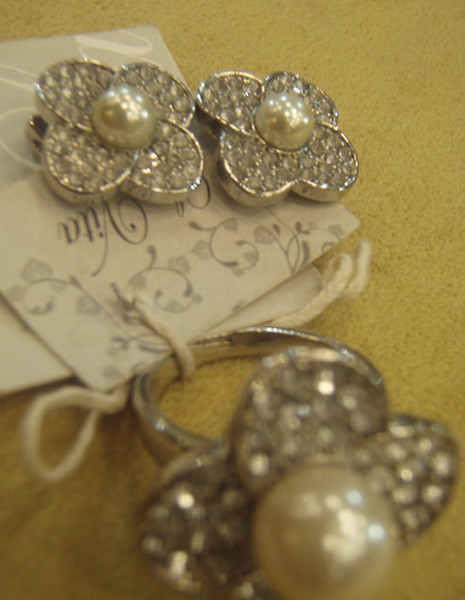 Vienotā stilā ieturēti klipšu auskariņi un gredzens.