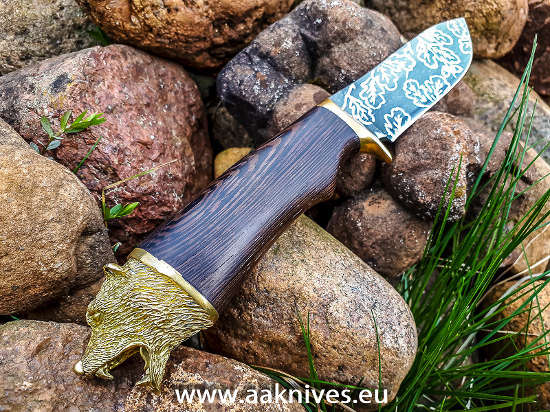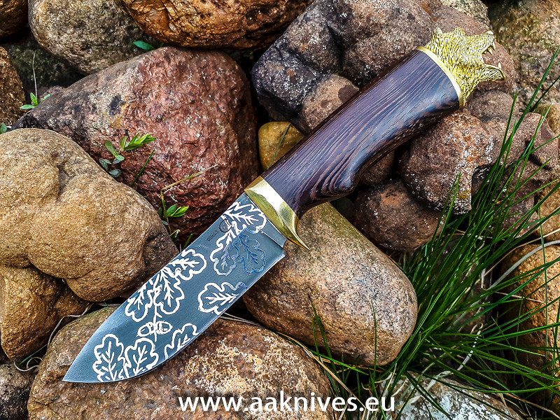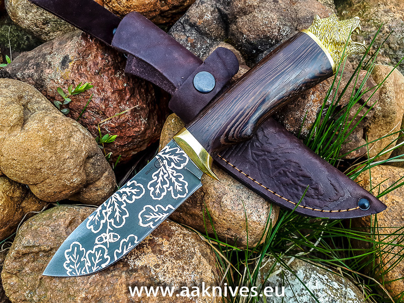 Elegants nazis medībām, makšķerēšanai, pārgajieniem - roku darbs. Nazis ”LĀCIS” – medību nazis no kalta laba nerūsējoša tērauda. Ķīmiski kodinātas ozolkoka lapas.